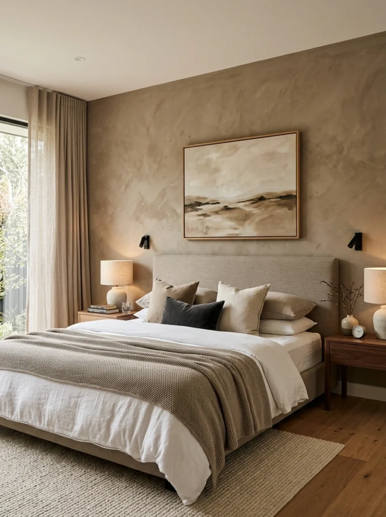 - Master suite strategy: Wrap the textured paint across the back wall and onto the ceiling to create a cocooning effect.