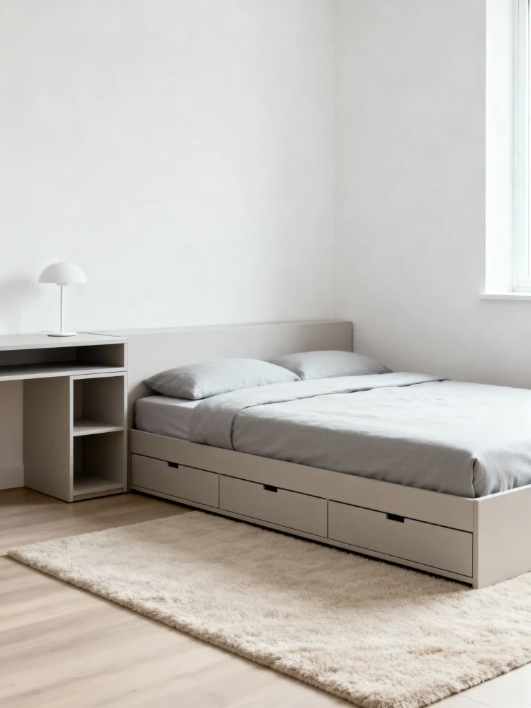 When designing a chic and minimalist bedroom, multifunctional furniture is your best friend. Consider a bed with storage drawers to keep the space tidy while providing a cozy spot to rest. Also, a bedside table that doubles as a workspace can help maximize your room’s functionality without sacrificing style.