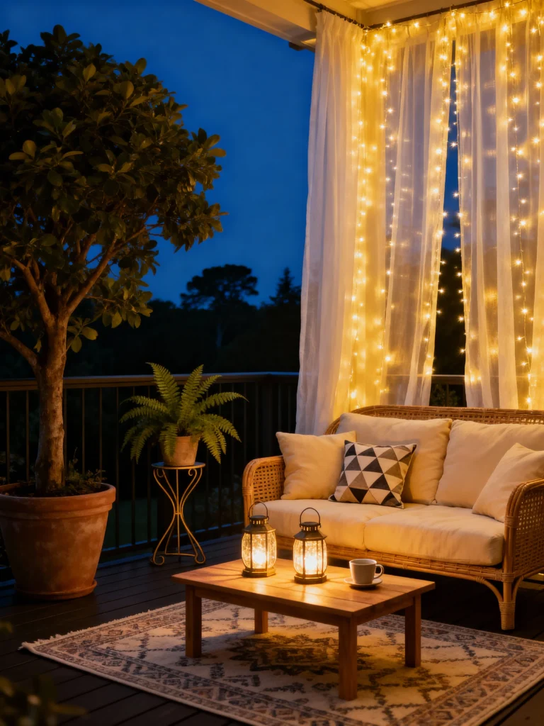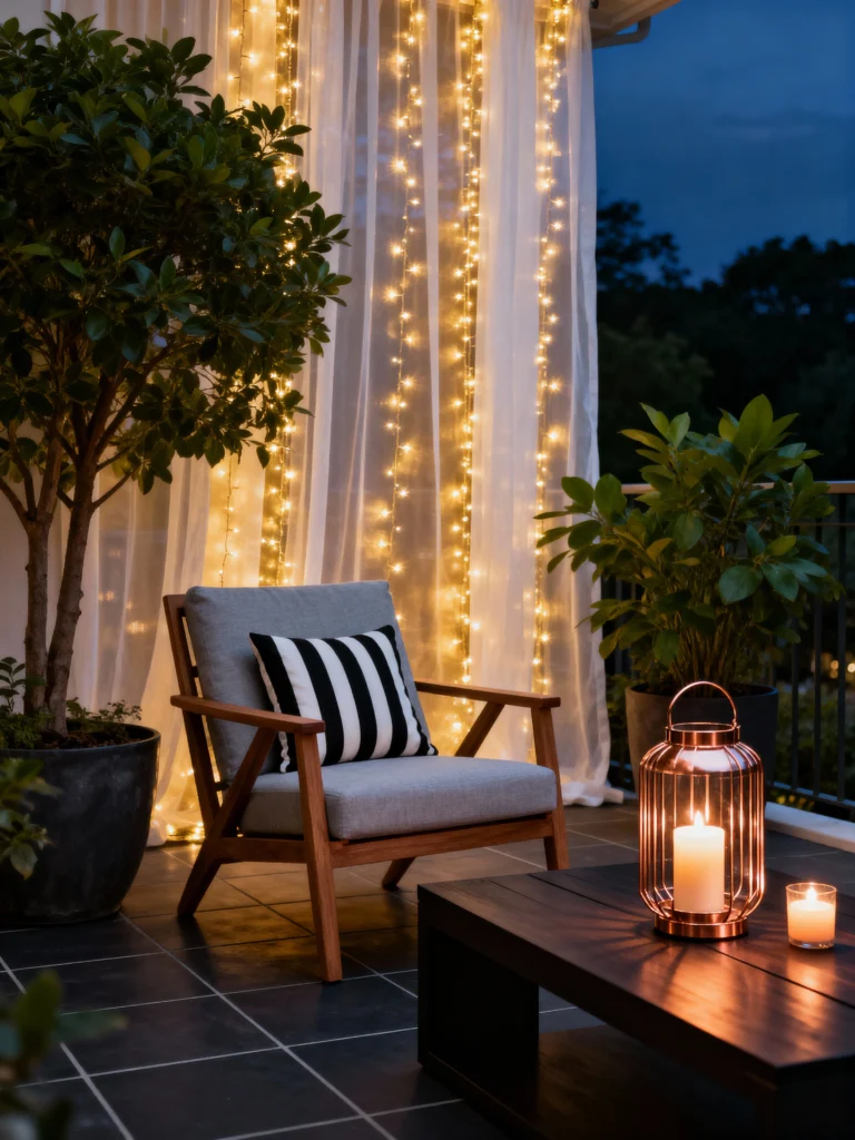Adding curtain lights to your small outdoor area brings a cozy vibe that’s hard to beat. The soft glow pairs beautifully with plants, creating a lush oasis right at home. It’s all about layering light to enhance the natural beauty around you, making even the tiniest spaces feel inviting and warm.