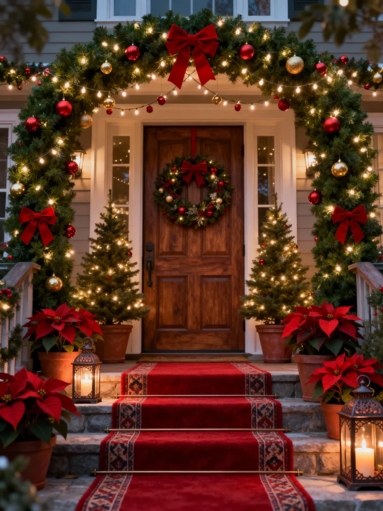 Using outdoor curtain lights is a fun way to celebrate the seasons! For the holidays, you can dress them up with festive garlands and bows, like those candy cane stripes that really pop. Just switch the colors and decorations with each holiday for a fresh look all year round!
