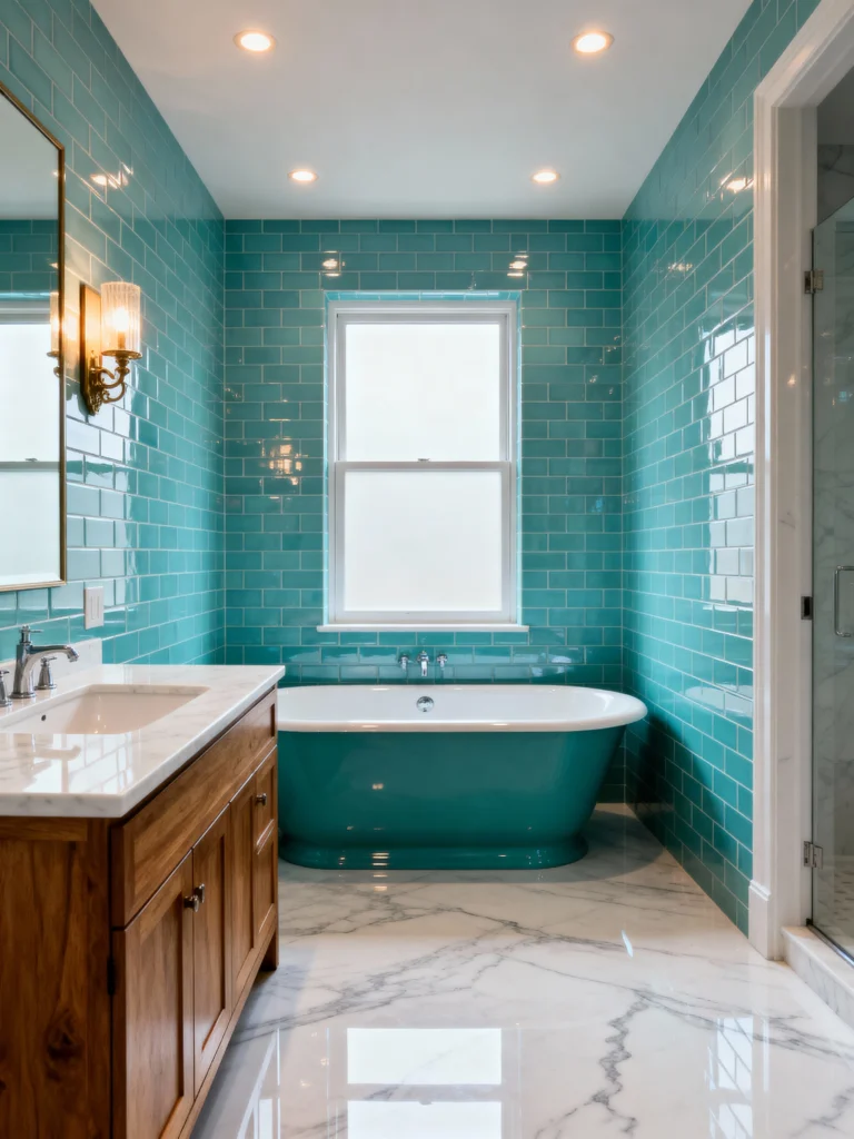 - Aqua Breeze: A light blue-green that’s all seaside retreat vibes. It’s fresh and airy—perfect for tiny bathrooms.