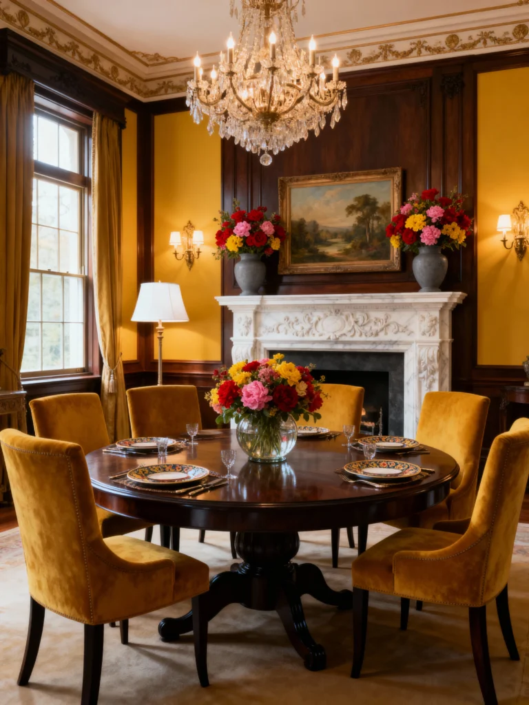 - Dining Room – Spiced Saffron: A bold, warm orange that makes every meal feel like a party. Pair it with sleek furniture for balance.