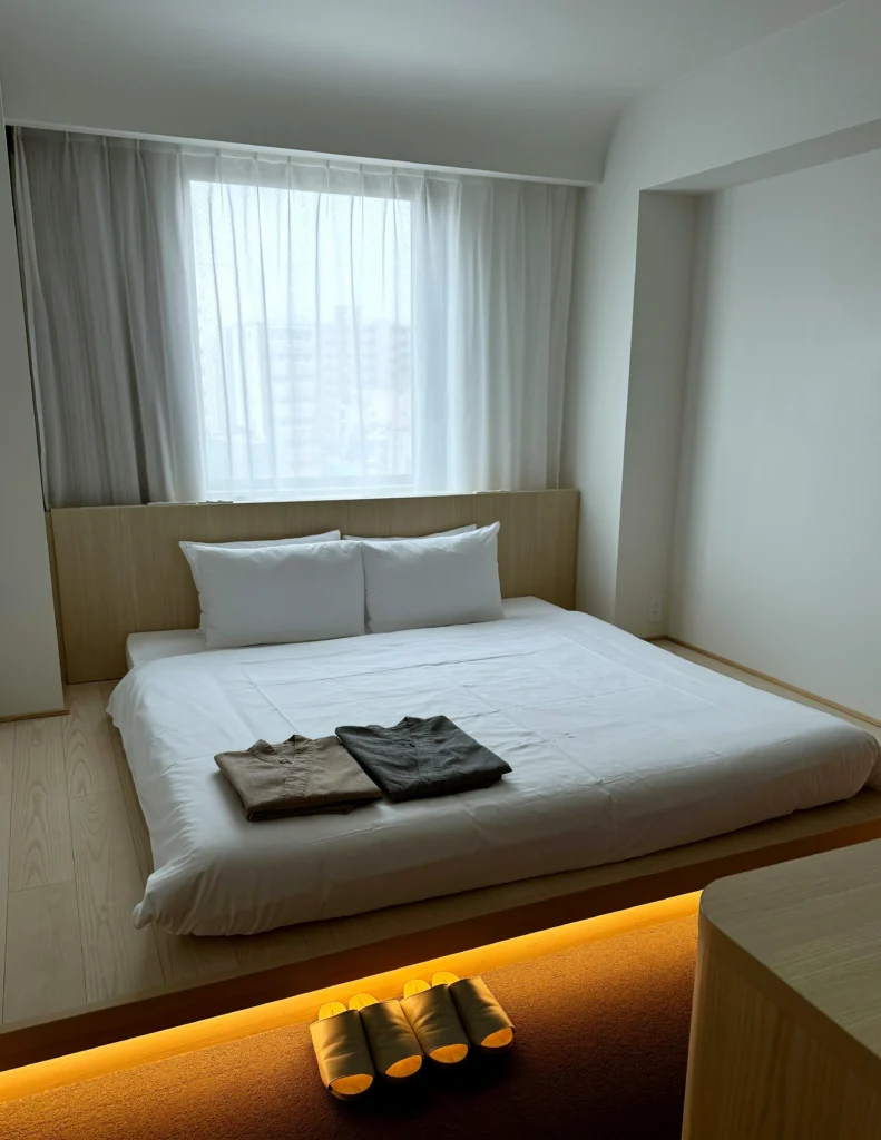 This room is the definition of Zen minimalism. The low-profile, platform bed sits on a raised wood platform, which is a classic Japanese-inspired look that promotes calmness. Everything is clean, white, and uncluttered, making it feel incredibly serene. The soft under-lighting adds a warm, welcoming glow that transforms the simple design into something really special.