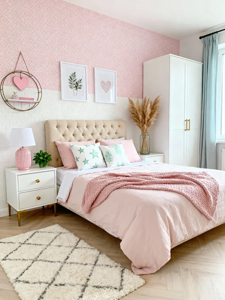 Mixing different textures can add depth and charm to your pastel bedroom. Soft throws, fluffy pillows, and a plush rug create a cozy and inviting space. Don’t be afraid to play with layering—it’s all about finding the right balance!