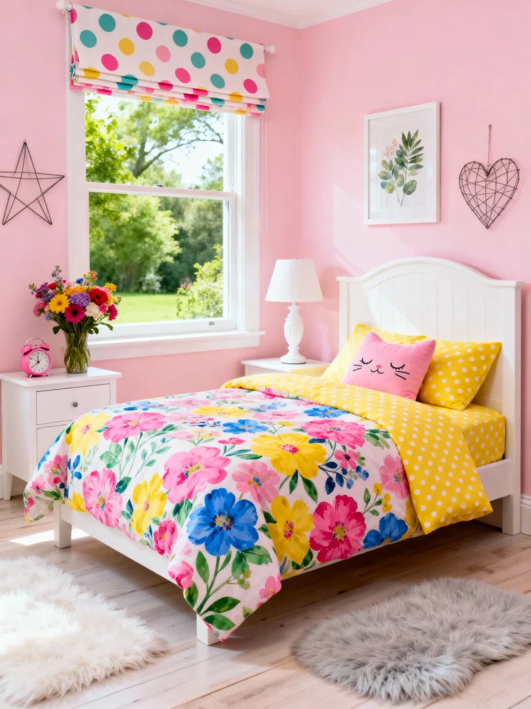 Choosing bedding can be a fun way for preteen girls to express their personality. Floral patterns mixed with stripes offer a cheerful vibe that brightens up the room. Adding a few cute pillows can really showcase their unique style.