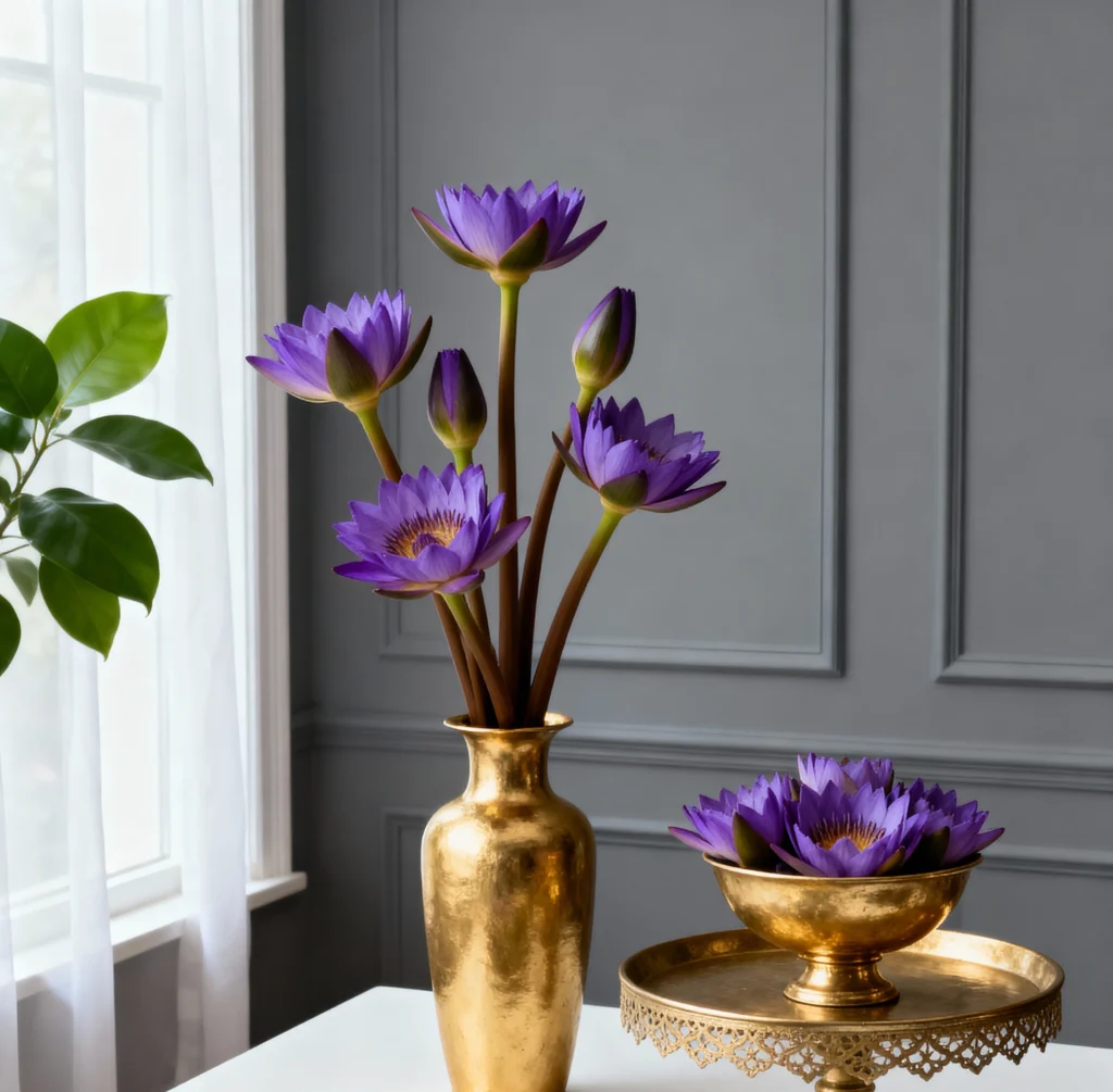 Decorative trays can add a touch of charm to any bedroom. The combination of gold and grey in these trays perfectly complements purple accents, creating a chic vibe. Use them to display flowers or other decor, and watch your space come alive!