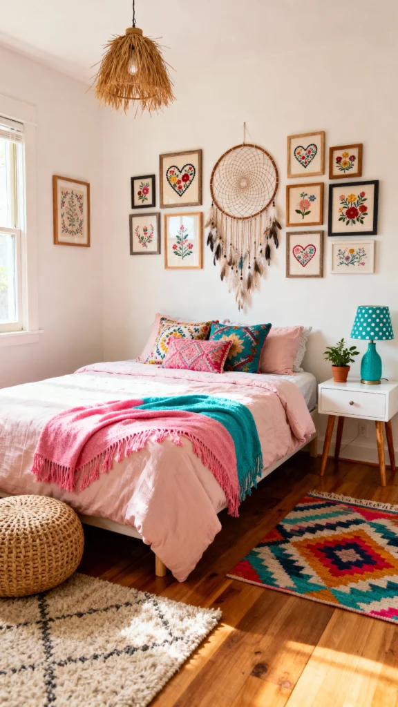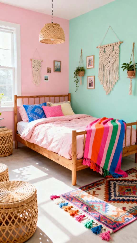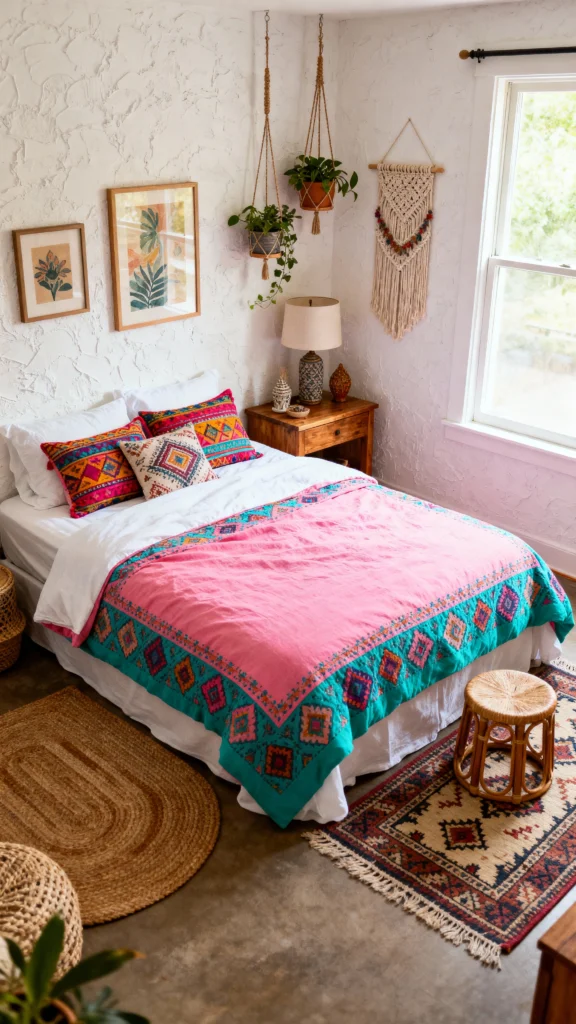 Mixing and matching colorful bedding can really bring your room to life. Think bold patterns combined with soft textures for a cozy vibe. Don’t be afraid to layer different colors and prints to create a unique boho look that’s all your own!