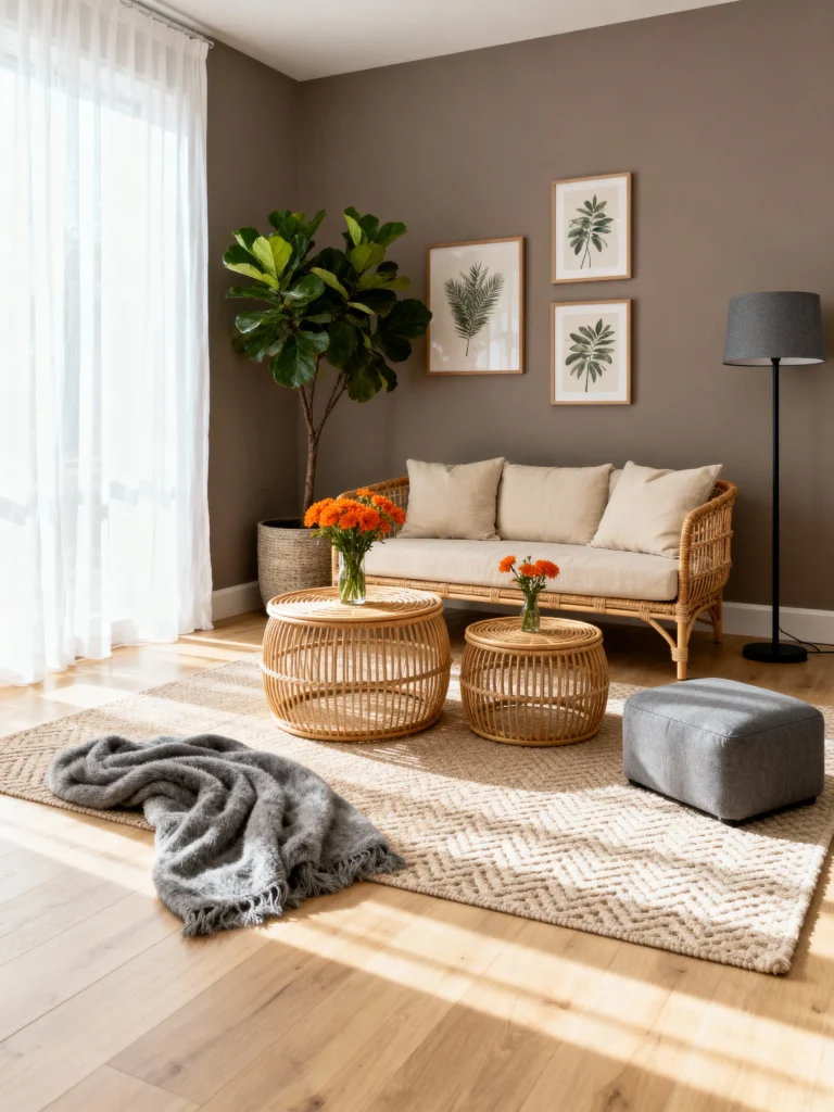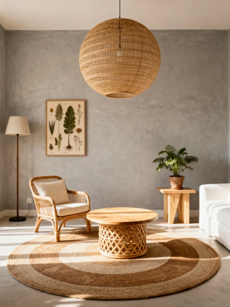 Incorporate natural elements such as wood accents, rattan furniture, or potted plants. These elements add a touch of organic warmth and bring a sense of nature indoors.