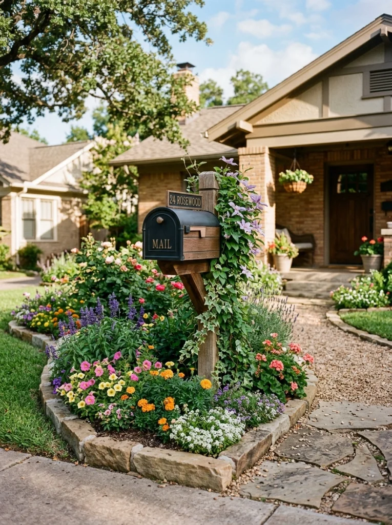 Transform the bare dirt around your street mailbox into a vibrant, seasonal flower bed framed by crisp stone edging. Why it works: It’s a brilliant affordable DIY project that pushes your curb appeal all the way to the street line, making your small property feel much larger. Best home style: Any style that features a street-side mailbox. Styling tips: Plant a hardy blooming clematis to climb the post, surrounded by tough, sun-loving annuals like petunias for constant summer color.