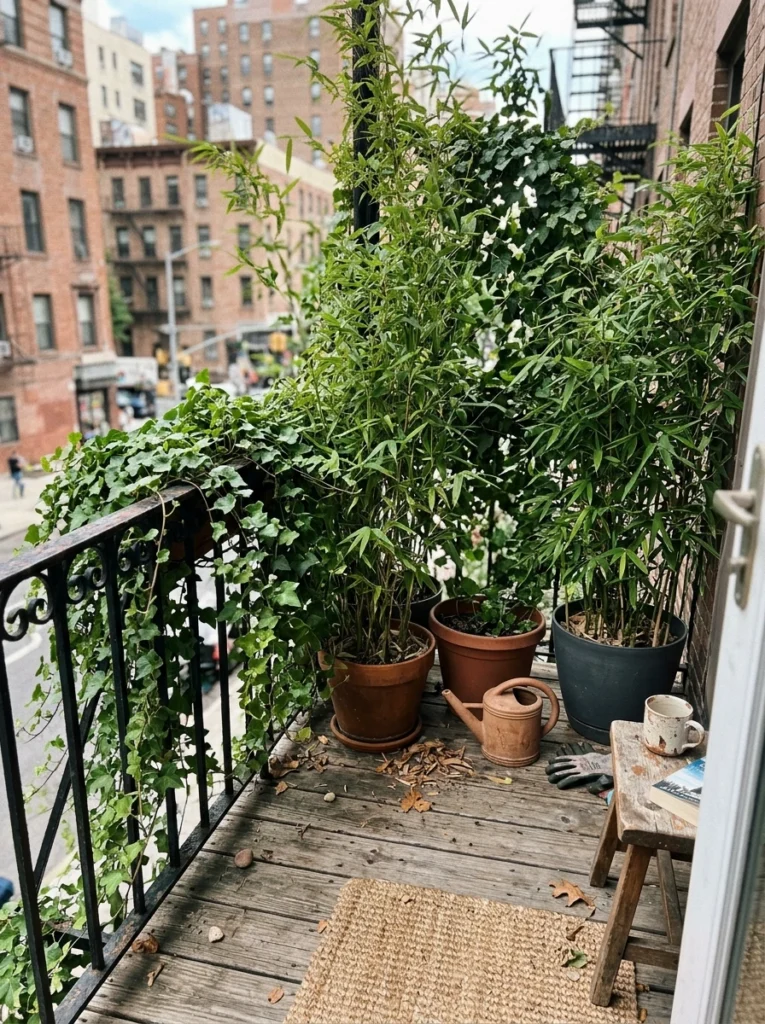 Let’s be honest, making eye contact with your neighbor while drinking your morning tea is awkward. Use plants strategically to build a living wall. Tall ornamental grasses in narrow trough planters or a small trellis with climbing ivy block prying eyes while injecting life and freshness into your tiny outdoor space design.