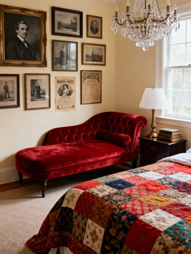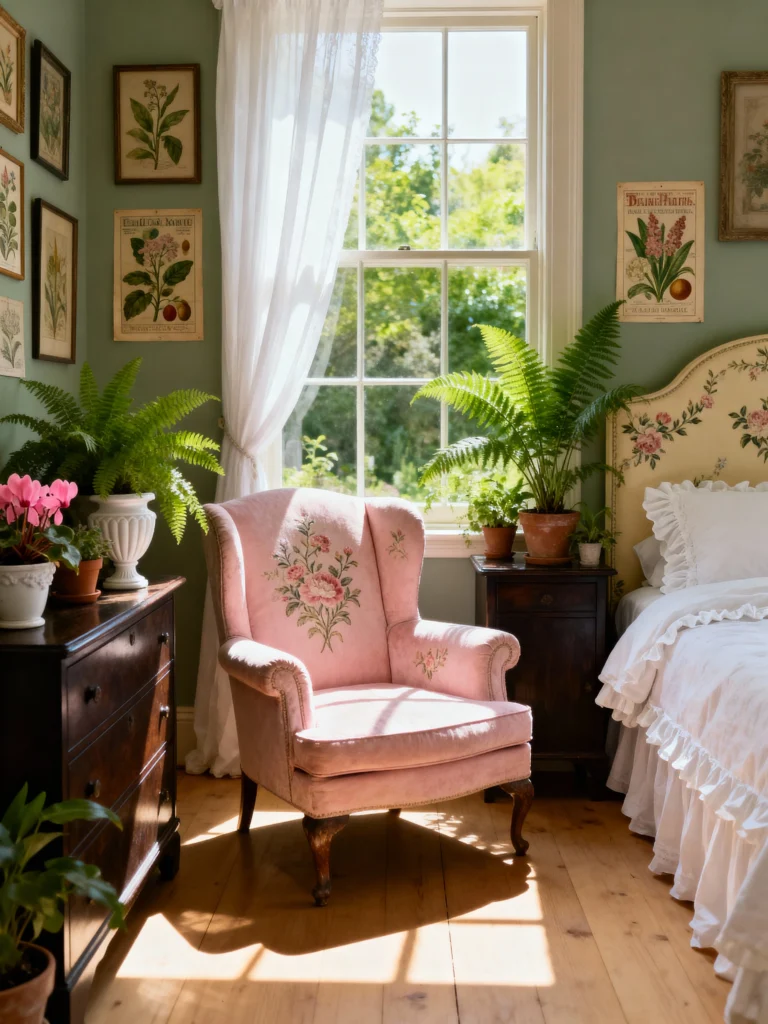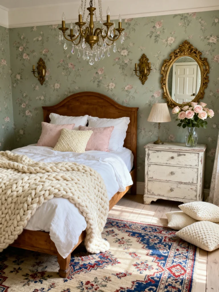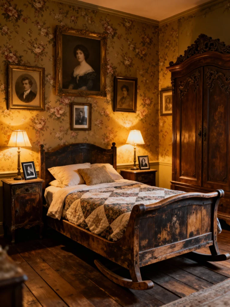 Combine floral linens, antique furniture, and edgy accents for a Cottagecore Grunge Room. These Vintage Room Ideas Bedroom create a uniquely cozy space that blends soft and rugged elements.