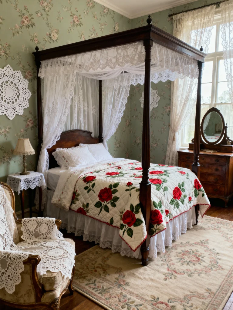 Lace accents add a delicate, charming touch to any vintage bedroom. They bring warmth and coziness, instantly making the space feel more inviting and comfortable. Using lace doilies on tables or dressers adds a subtle layer of texture and nostalgia, while sheer lace curtains gently filter natural light to create a soft, dreamy atmosphere. These details beautifully enhance the cottagecore grunge vibe, blending rustic charm with a touch of elegance. Incorporating lace helps your bedroom feel both timeless and welcoming—a perfect spot to relax and unwind.