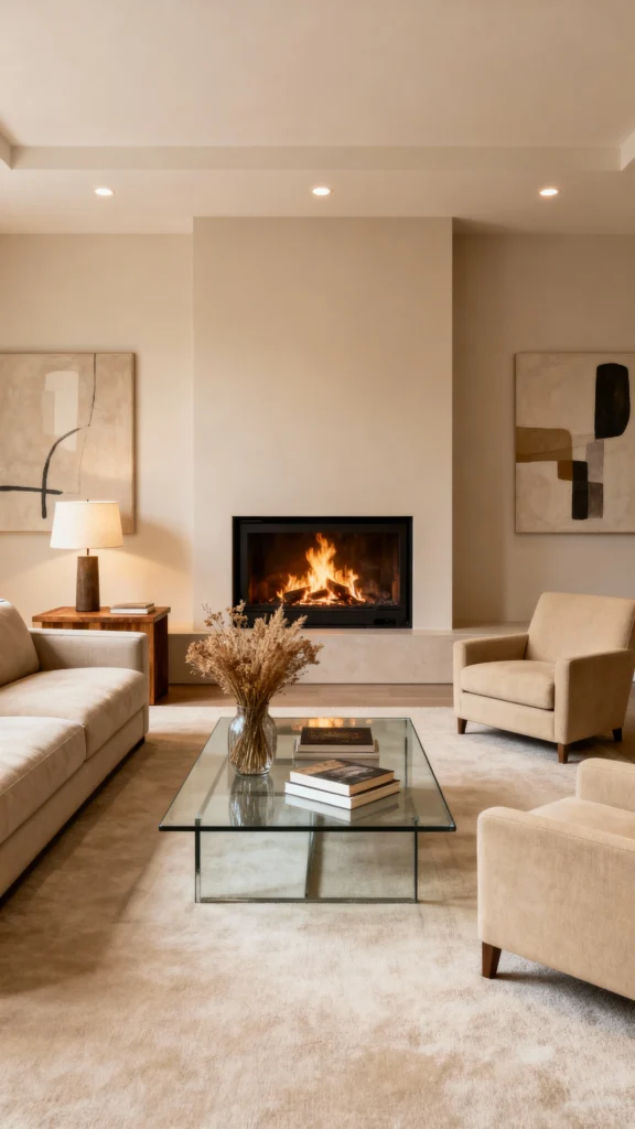 - Earthy Neutrals: Beige, taupe, and warm grays create a calming backdrop.