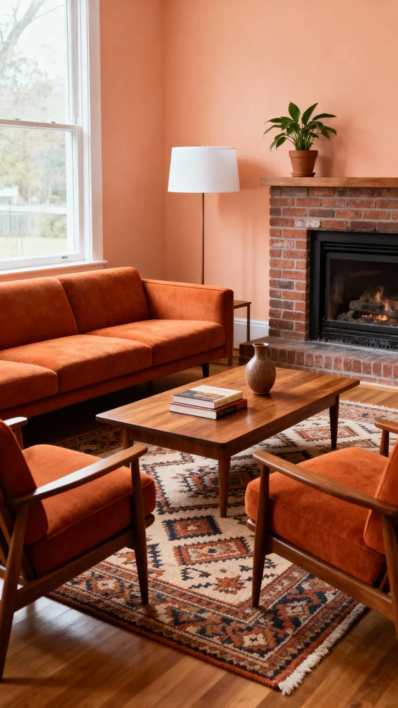 Terracotta is a warm, earthy color that adds a touch of rustic charm to your living room. It’s perfect for creating a cozy, Mediterranean-inspired vibe.