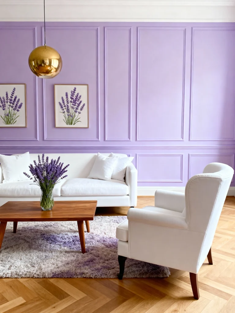 - Use muted lavender in small doses, such as in throw pillows, artwork, or a cozy blanket.