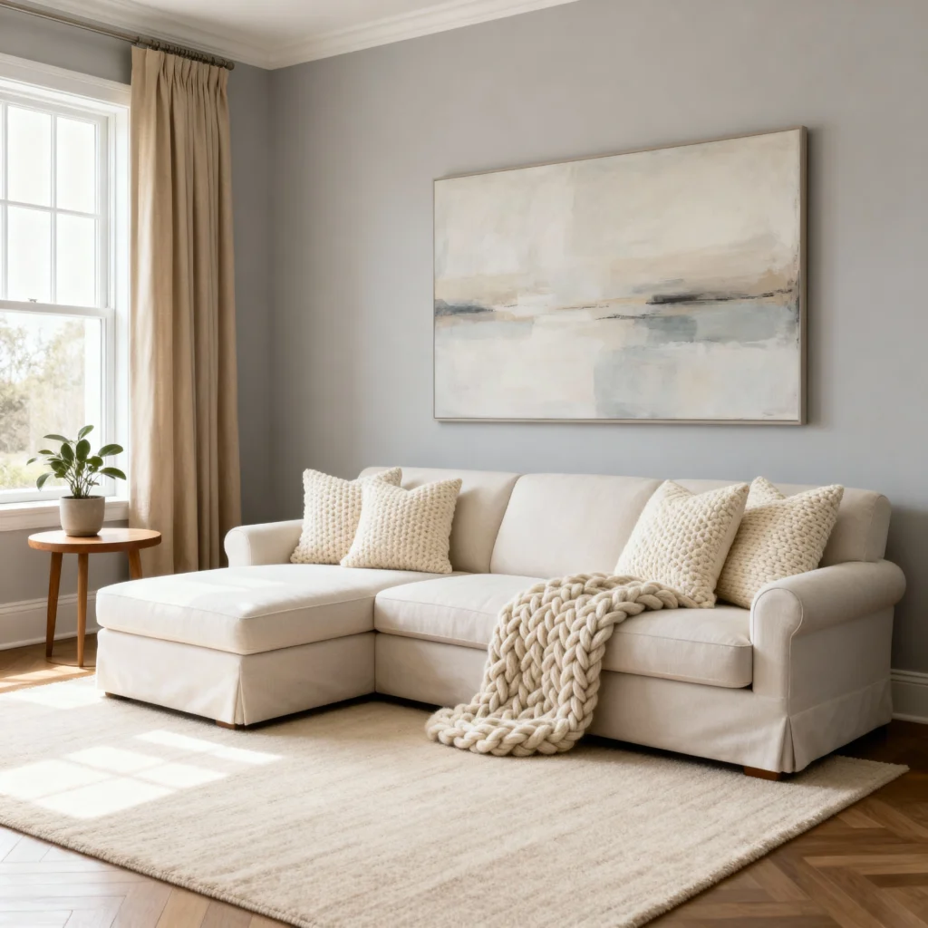 - Shades to try: Beige, taupe, soft grays, off-whites. Warm and cozy vibes.