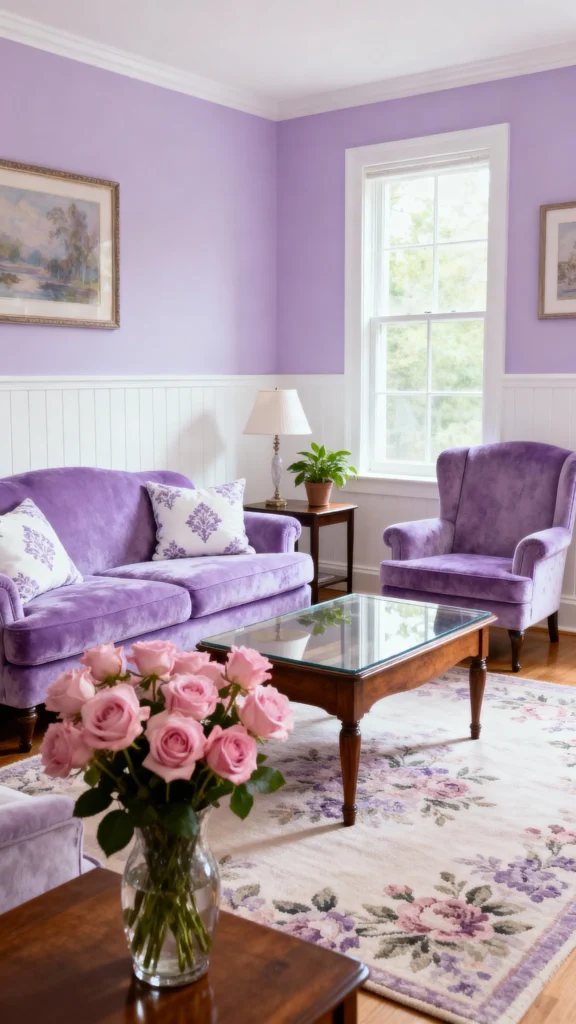 Use it on an accent wall or in decor like throw pillows or artwork. Pair it with soft grays or whites to keep it classy, not cartoonish. Bonus points if you add a lavender-scented candle for the full effect—just don’t blame me if you doze off mid-movie. It’s subtle, sophisticated, and oh-so-soothing.