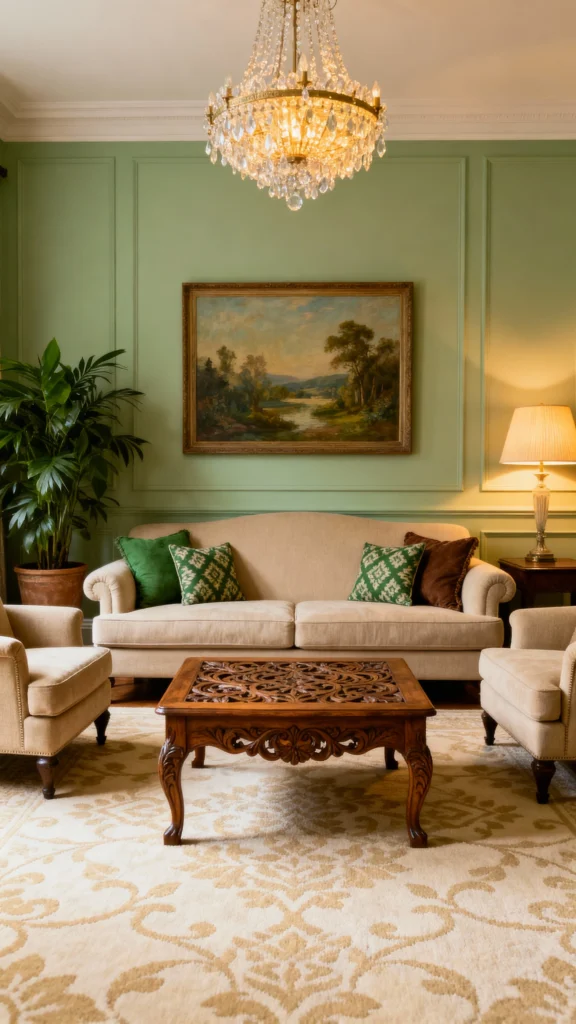 Next up, sage green—a color that’s as soothing as a walk through a quiet forest. This muted green screams balance and harmony, making it a stellar pick for a living room where you want to recharge. Sage green pulls the outdoors inside, giving you that nature-inspired calm we all crave. Plus, it’s versatile enough to fit any style, from sleek modern to cozy farmhouse.