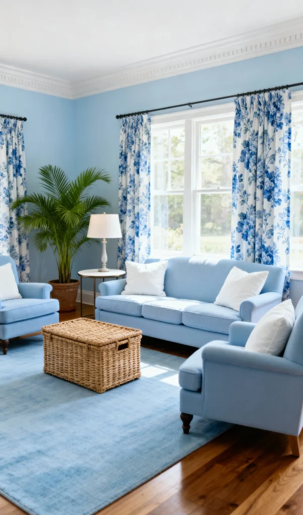 Picture this: you sink into your couch, surrounded by walls in a gentle sky blue. It’s like the sky itself is giving you a cozy hug. But here’s the catch—don’t go too dark. A navy blue might feel more formal or moody, which isn’t the goal. Stick to lighter shades like powder blue or robin’s egg. Pair them with crisp whites or warm wood tones for balance. Worried about it feeling cold? Toss in a plush rug or golden throw pillows. Trust me, it’ll be chef’s kiss.