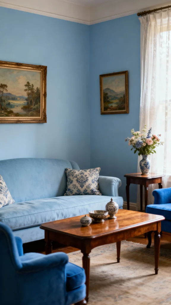 Dusty blue’s another gem. It’s got this soft, soothing vibe that makes your living room feel like a retreat. Pair it with white for a beachy feel or warm woods for something rustic. I’ve got a dusty blue armchair at home, and every time I add brass accents, it’s like the room levels up. It’s subtle but fancy—perfect if you want elegance without trying too hard.