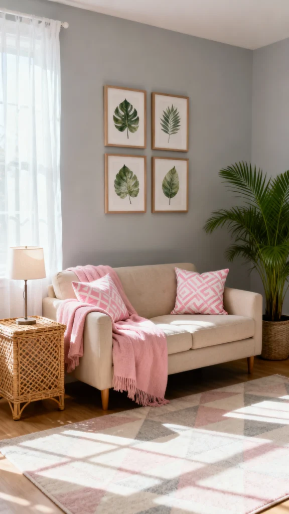 - Accent Color: Fun pops in pillows or art (e.g., terracotta cushions).
