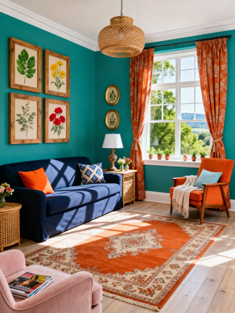 I tried this combo on a DIY project—a blue chair with orange cushions. Looked great in my head, but IRL? My friends said it felt like a budget airline threw up on my furniture. Balance is key, people.