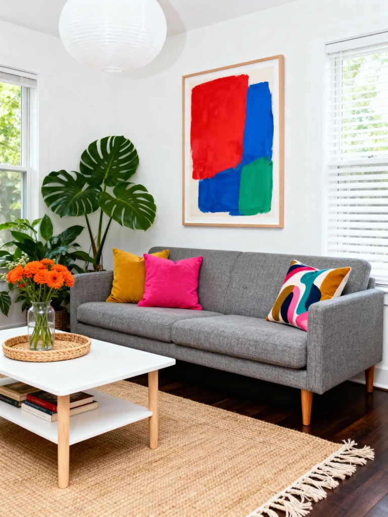 - Accent tip: Keep accents simple—white, grey, or black balance the brightness.